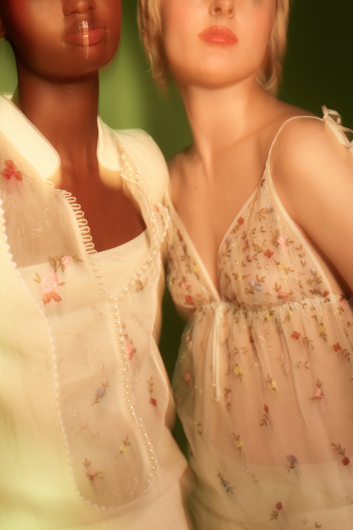 "A photograph of Bahraini pearl divers in their sarongs gently gathered and tied at the waist, mixed with dreams of summer sunshine, holiday memories and flowers, were the starting point for our summer collection development."